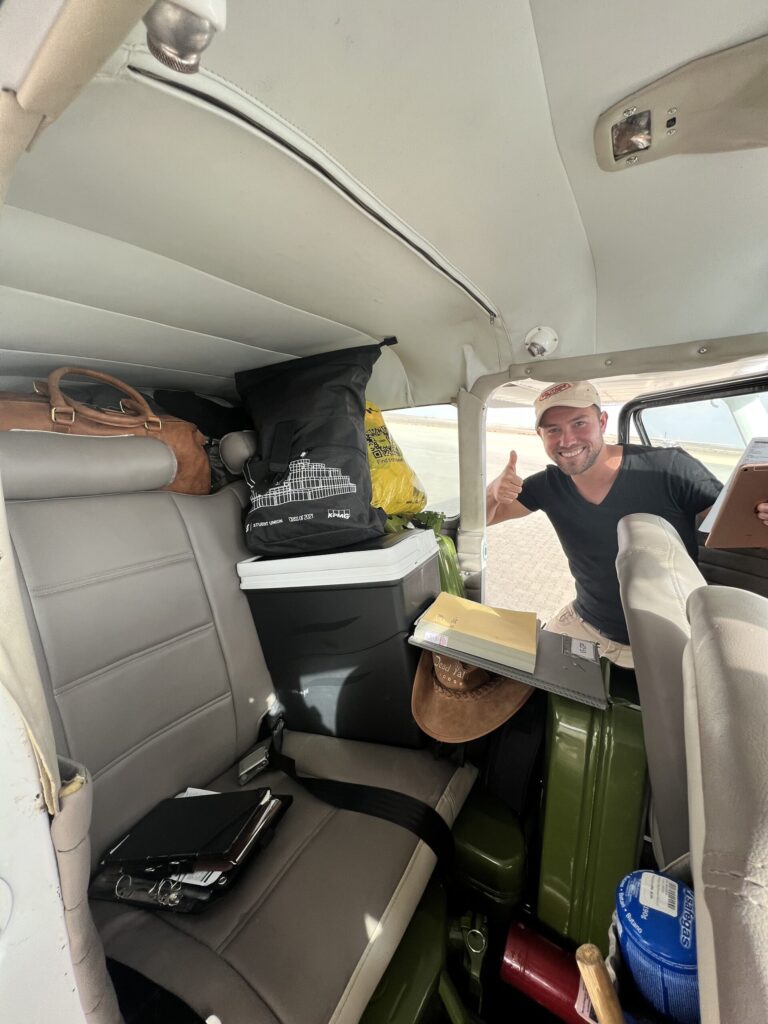 Daumen hoch von Martin nach dem Beladen (Überladen?) unserer Cessna 182